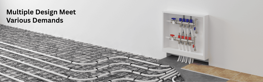 Utilizing PEX pipes or multilayer pipes for its pipe circuits, the RIFENG Underfloor Heating System efficiently and safely heats your room, meeting rigorous standards such as CSA B137.5, ASTM F877, ASTM F1807, and more.